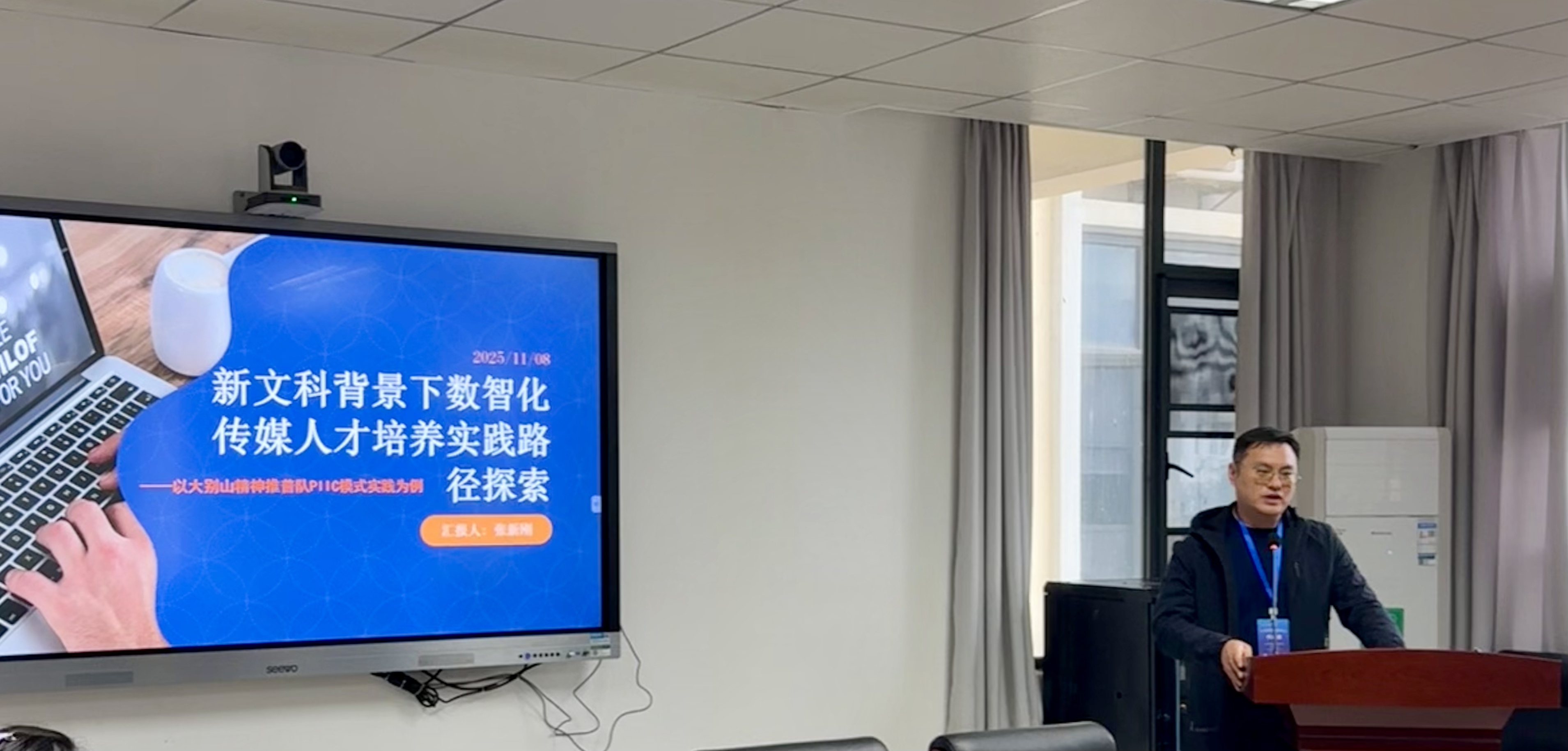 分论坛交流中,张新刚副教授以《新文科背景下数智化传媒人才培养实践路径探索——以大别山精神推普队PIIC模式实践为例》为题,展示我院传媒人才培养成果,获专家一致好评;吴静老师就荆楚文化相关研究分享思考,两篇论文均紧扣论坛主题,回应行业新要求。