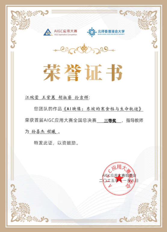 三等奖《AI 映像:东坡的寒食帖与生命轨迹》