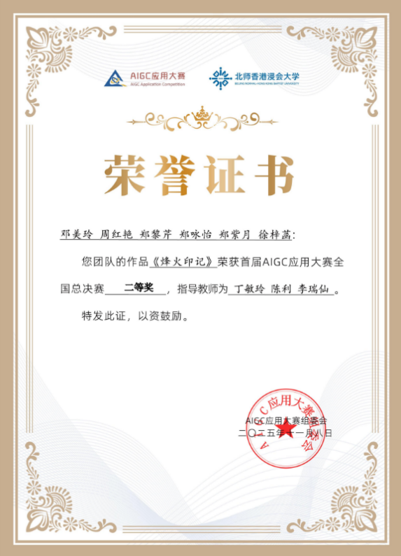 在竞争激烈的决赛中,黄冈师范学院参赛学子沉着应战,充分发挥专业特长。在首届设立的AIGC应用赛道中表现尤为抢眼,夺得一等奖、二等奖各一项,三等奖三项。