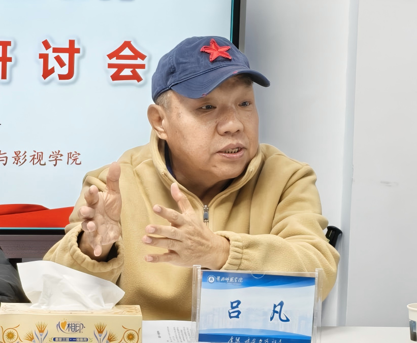 交流中,吕凡老师还与大家探讨了戏剧如何持续发展。他认为,话剧创作应当与专业教学、实践训练紧密衔接,通过有计划地排练和培养后备力量,让话剧团队能够良性运转。他建议学校多鼓励学生参加各类演出和比赛,同时把创作实践转化为教学和科研成果,践行“在科研中教学,在教学中科研”。