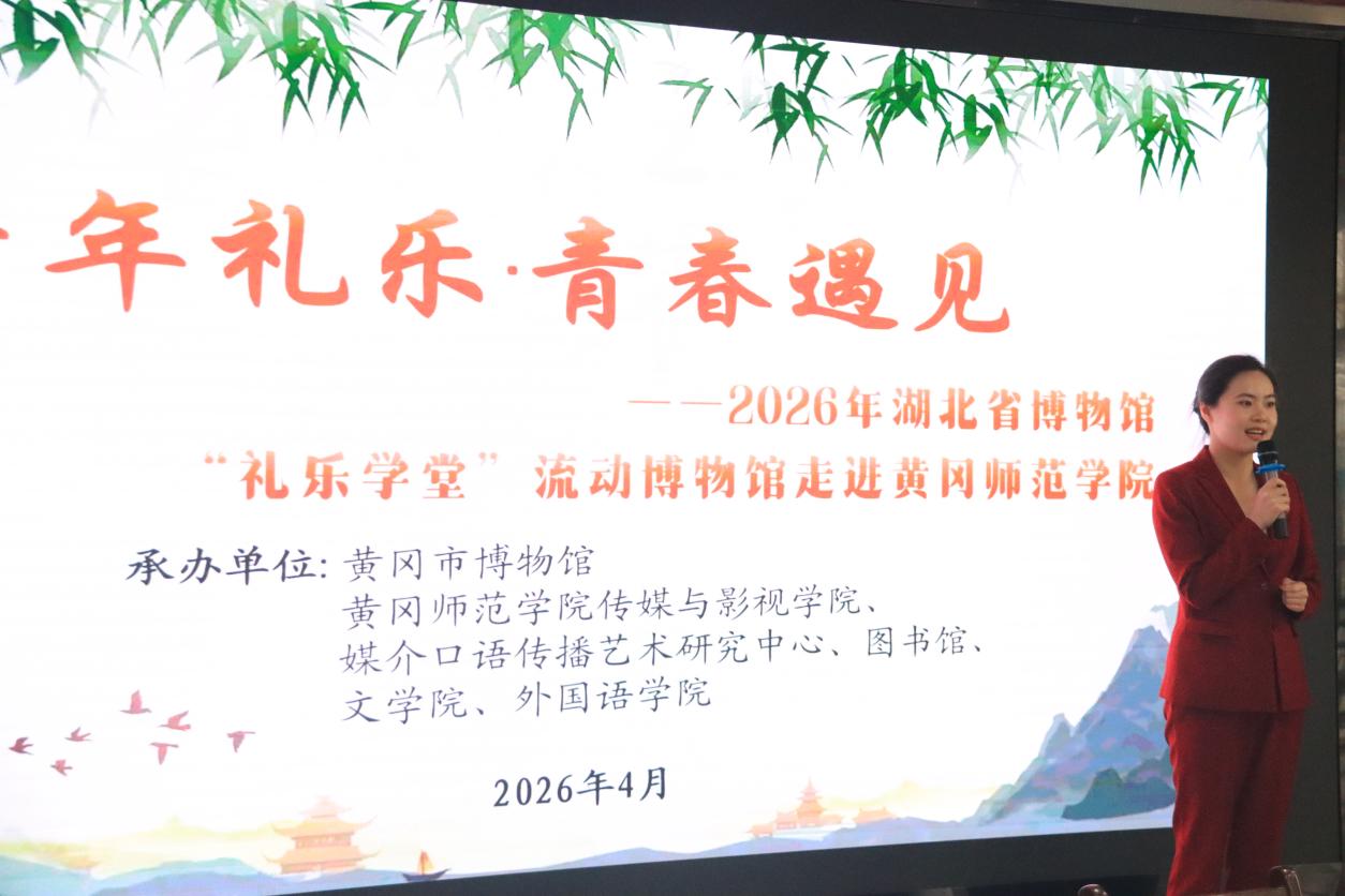 据悉,本次活动由湖北省博物馆主办,我院与校媒介口语传播艺术研究中心协同黄冈市博物馆、校图书馆、文学院、外国语学院联合承办,大别山推普队学生团队协助组织。“礼乐学堂”是湖北省博物馆持续打造的社教品牌,长期推动流动博物馆进校园、进社区、进乡村。此次活动将优质文博资源引入高校课堂,以年轻化、沉浸式方式让荆楚文化走近青年,也为中外学子搭建了跨文化交流的桥梁。